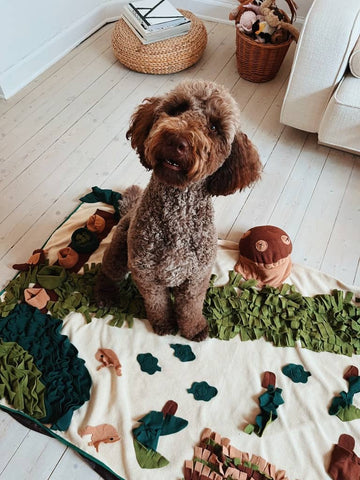 Snusetæppet giver med sine mange lommer til godbidder mulighed for at træne din hunds snusearbejde, hvilket ikke kun er godt for sanserne, men også for hjernen. Din hund udtrættes derfor på en sund og sjov måde, efter at have benyttet sig af aktivitetssnusetæppet til at snuse sig frem til godbidder eller sit foder.